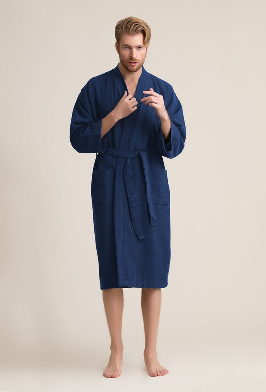 100% Cotton Waffle Weave Navy Men's Spa Bathrobe