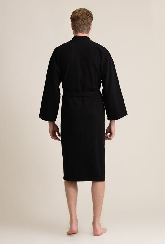 100% Cotton Waffle Weave Black Men's Spa Bathrobe