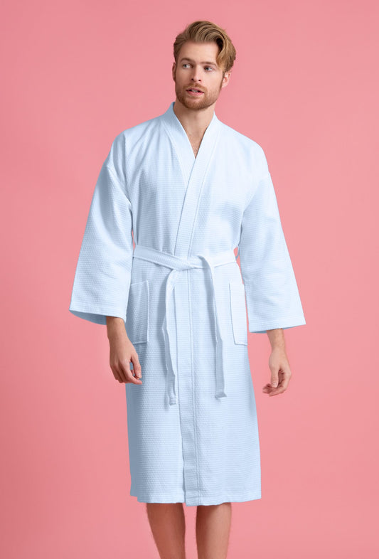 100% Cotton Waffle Weave Light Blue Men's Spa Bathrobe