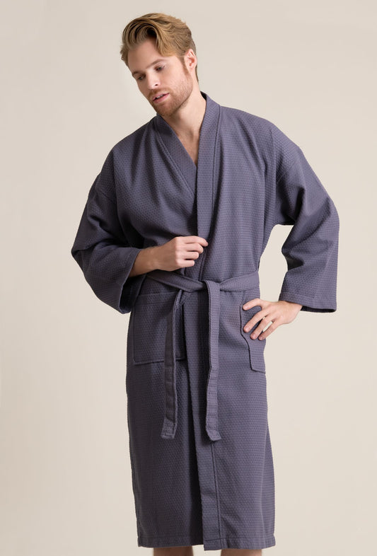 100% Cotton Waffle Weave Gray Men's Spa Bathrobe