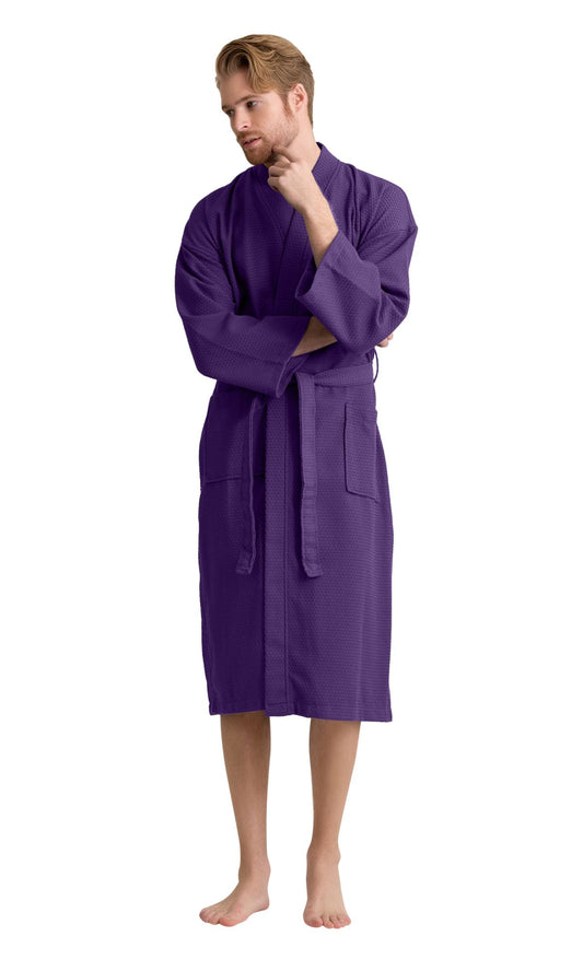 100% Cotton Waffle Weave Purple Men's Spa Bathrobe