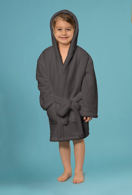 Boys Hooded Gray Robe of Plush Microfleece. Soft, Warm with 2 Pockets & Belt