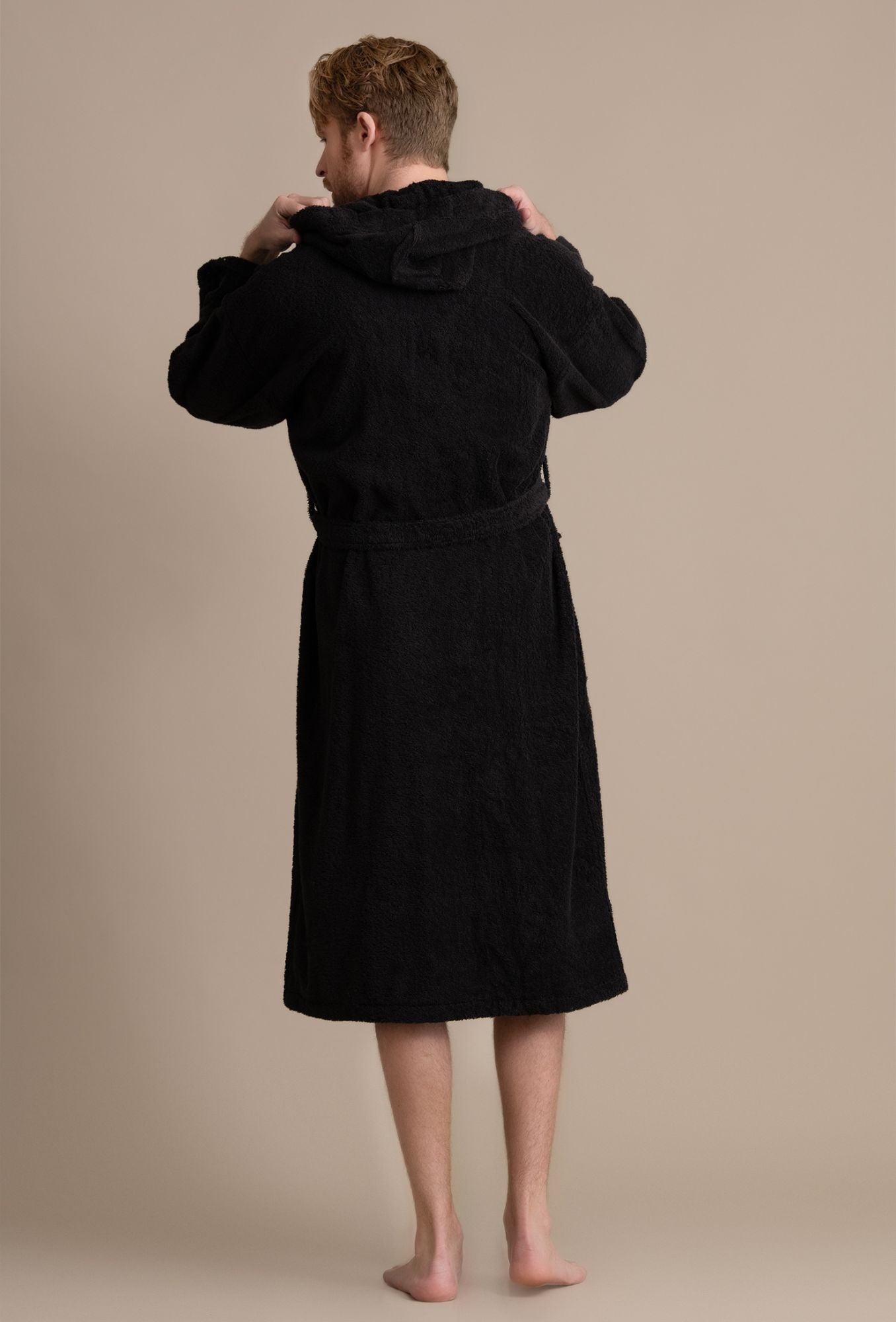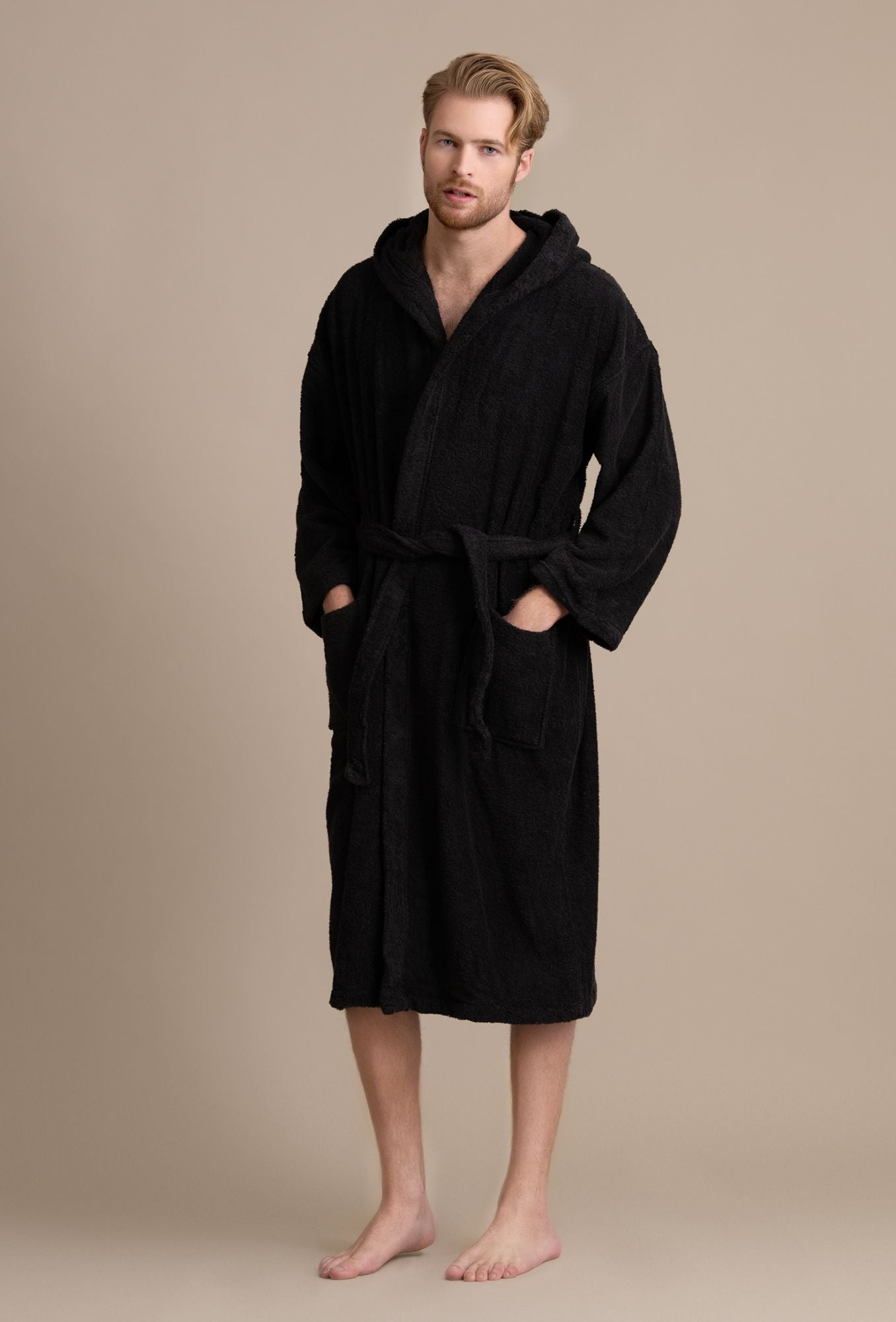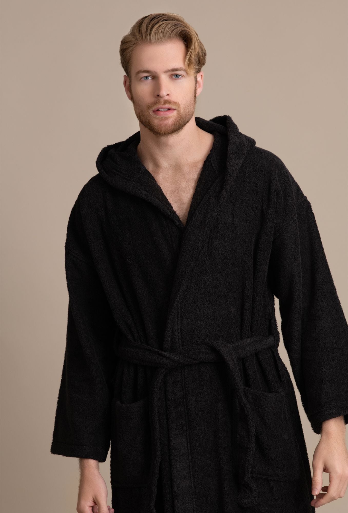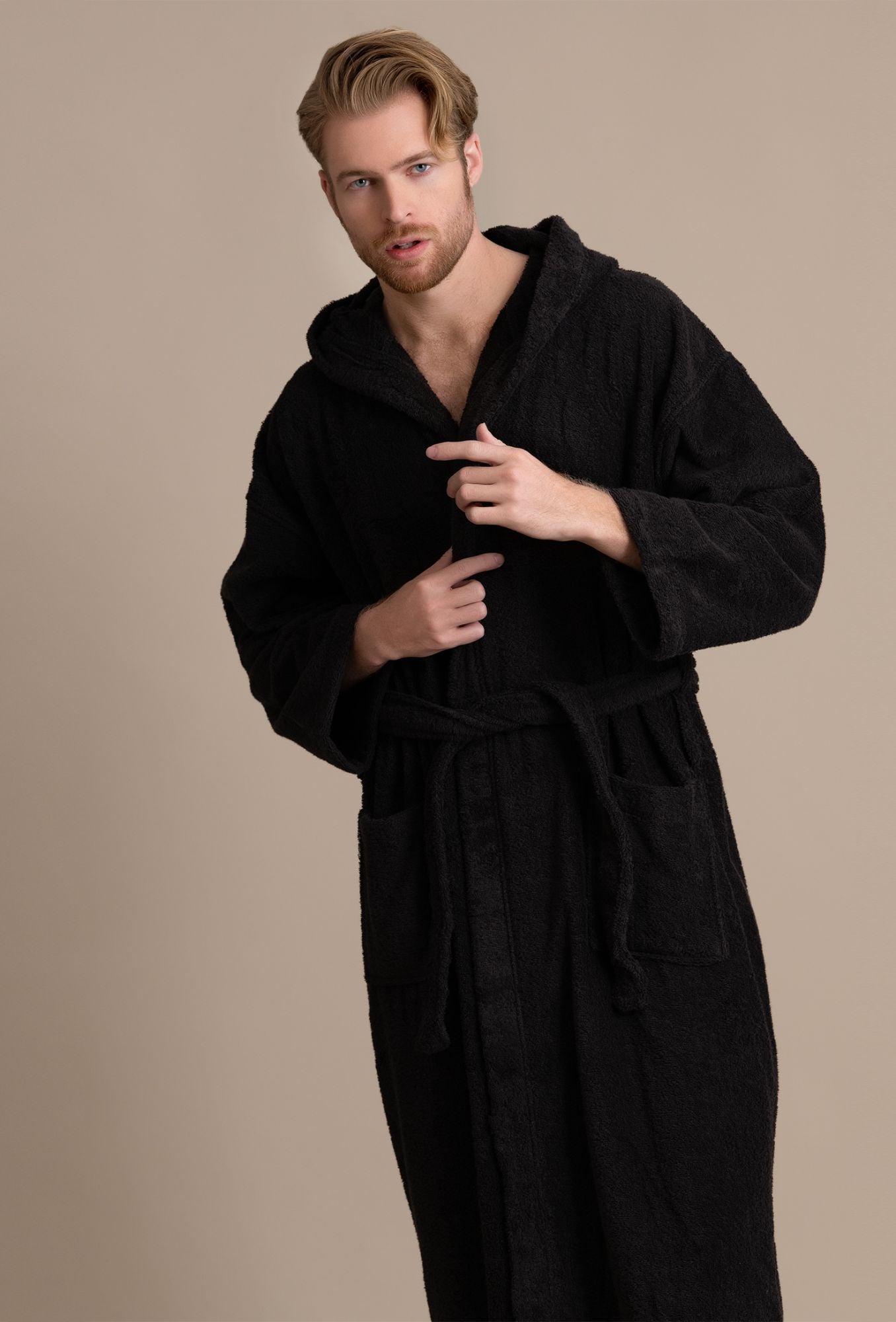 Men's Hooded Robe, Cotton Terry Hooded Spa Black Bathrobe