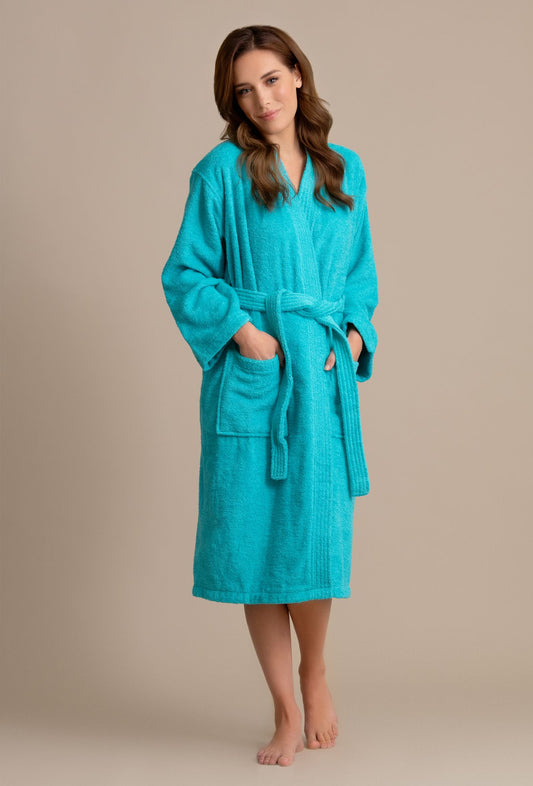 Deluxe Spa-Style Women Cotton Loop Terry Kimono Bathrobe