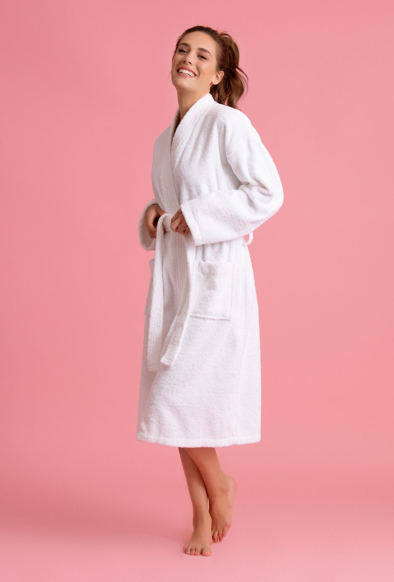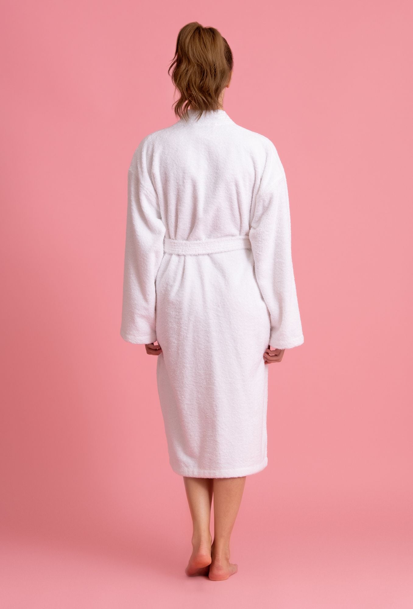 LUXURIOUS KIMONO BATH ROBE for women. This is made with an absorbent terry weave - Towel Like. This robe is made by a top workshop there and imported directly from the factory by our family business. We ensure excellent quality with a bathrobe that will feel soft, thick, and wonderfully wick water and moisture. These come in all sizes small, medium, large, and XXL. We offer them in your choice of white, red, light blue, navy, black, green, pink and more. Get the perfect fit and look for you.