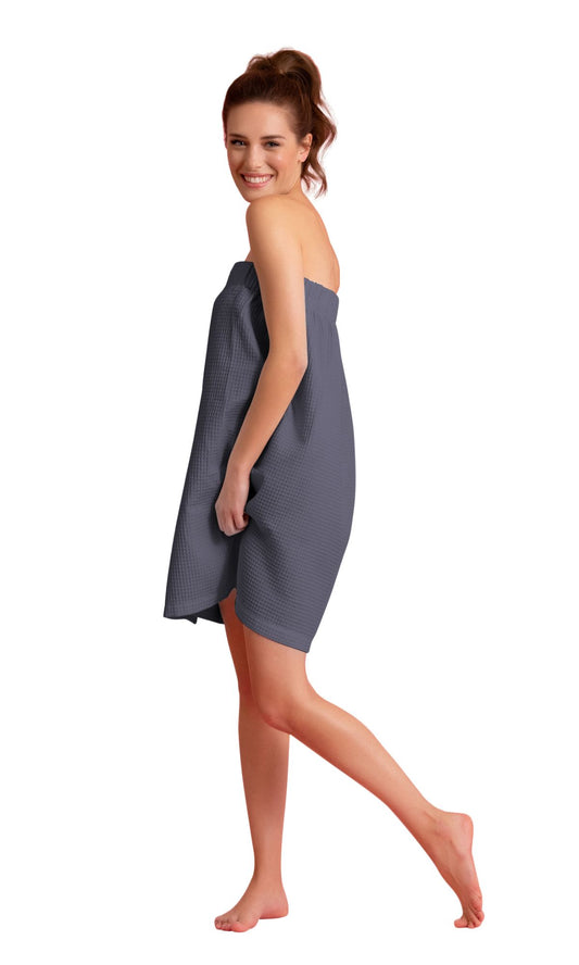 Women's Waffle Weave Spa/Bath Charcoal Wrap with Adjustable Closure