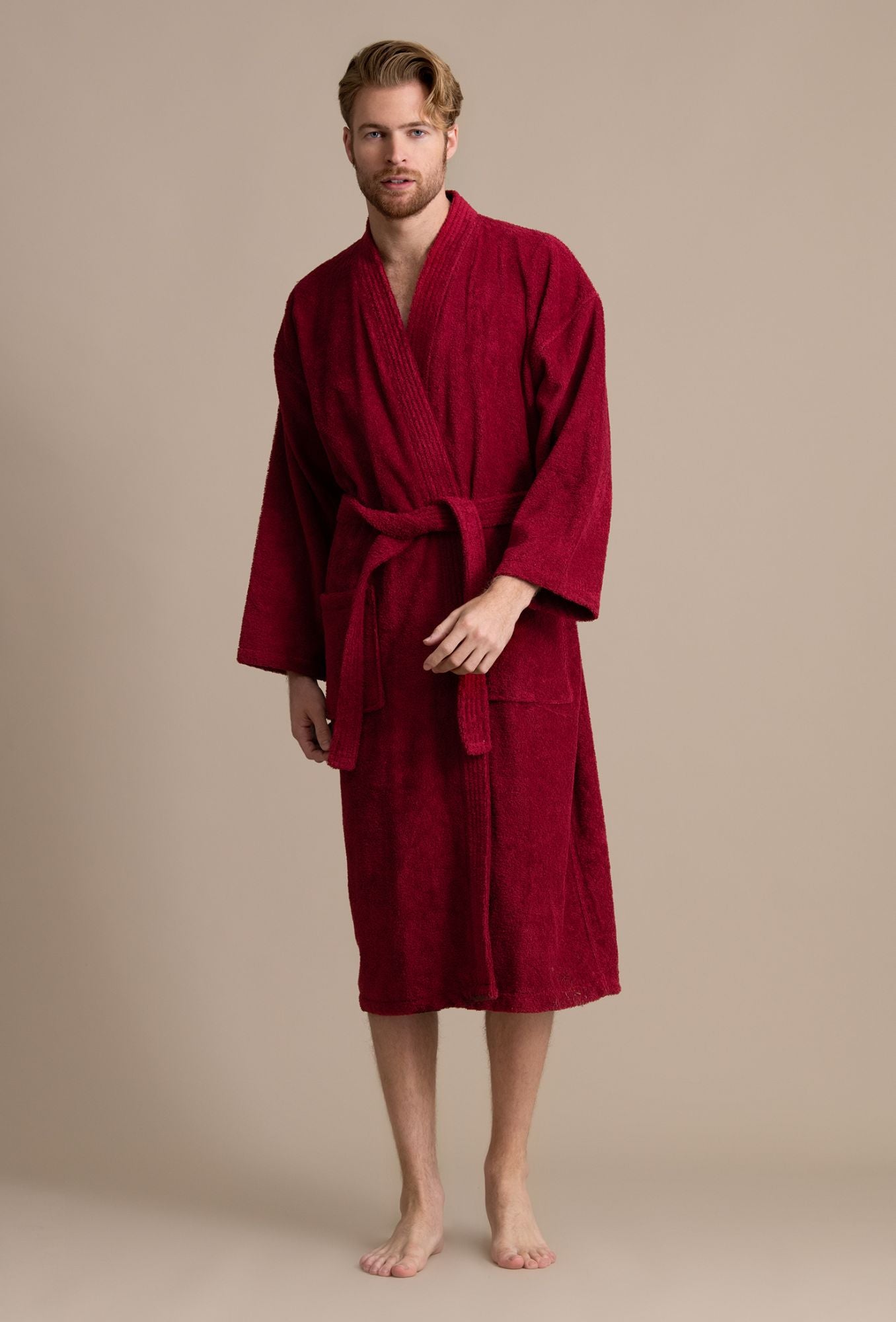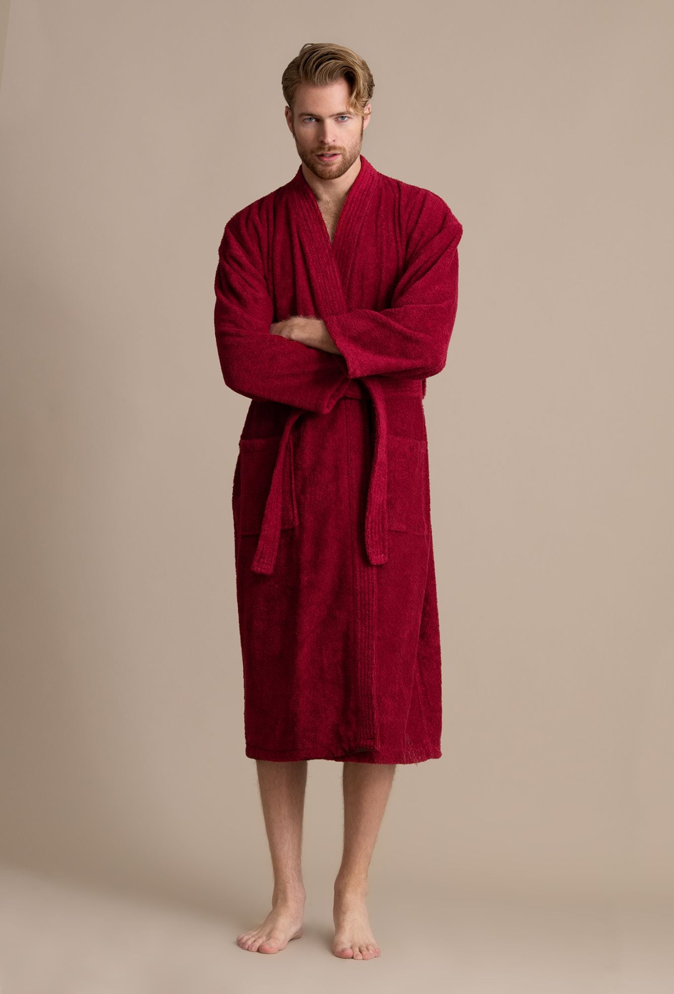 STYLISH KIMONO STYLE BATHROBE is what every man wants and needs. This draws its inspiration from the traditional Japanese garment always worn when coming and going from famous heated pools. It has the preferred flat neckline and short, wide sleeves. You get comfort, convenience, and ultimate usability. Made with 100% Turkish cotton terry that keeps you warm, is super soft, and always soaks up moisture. It's the natural material that is eco-friendly and free of toxins and harsh chemicals.