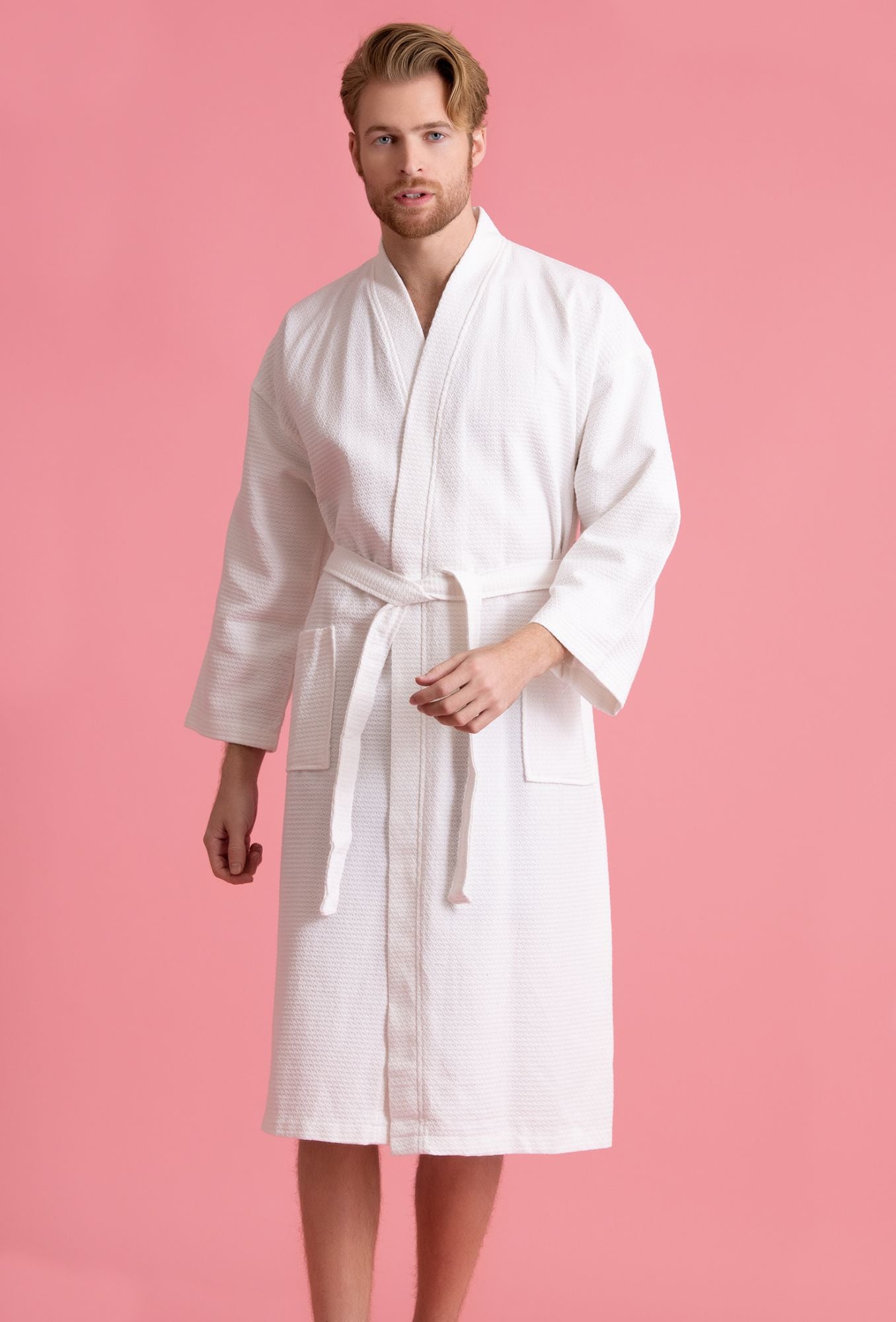 MEN LOVE THIS diamond pattern robe with 100% cotton in the popular waffle spa design. It's extra comfortable and absorbent. This is the robe you want waiting for you as you step from the shower. Lots of guys choose this for its higher quality and ability to make you feel like a king every time you put it on. We offer white, navy, black, and gray colors to match any personal preference. Many customers love this robe so much they return to buy another in a different color. COOL IN SUMMER and warm during chilly winter months. This natural cotton in the waffle spa pattern is just right for conserving body heat or keeping you cool during warm months and in steamy bathrooms.