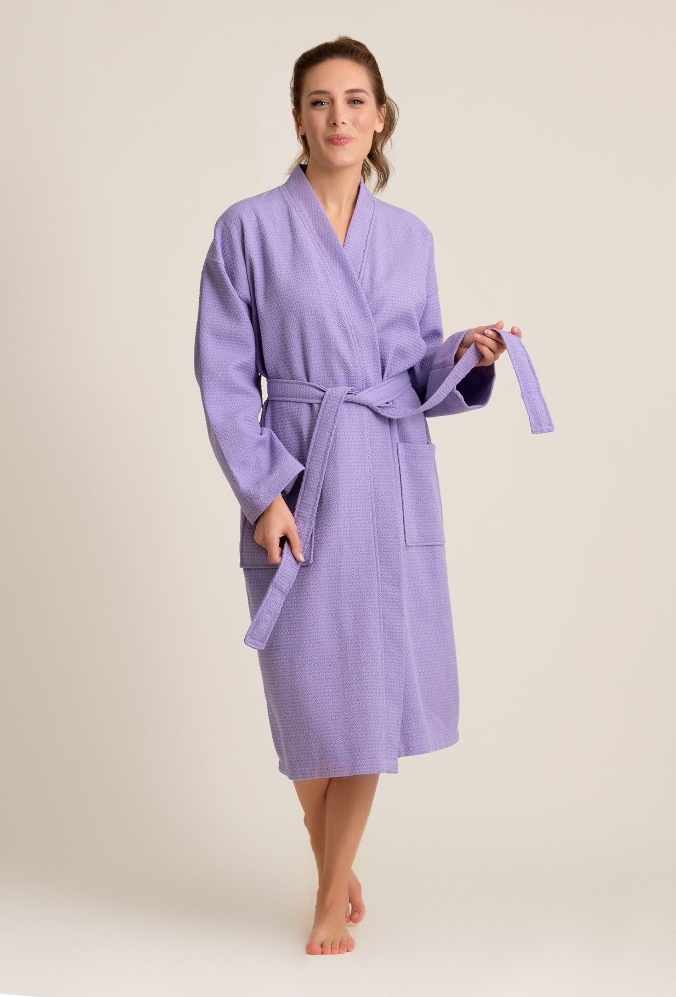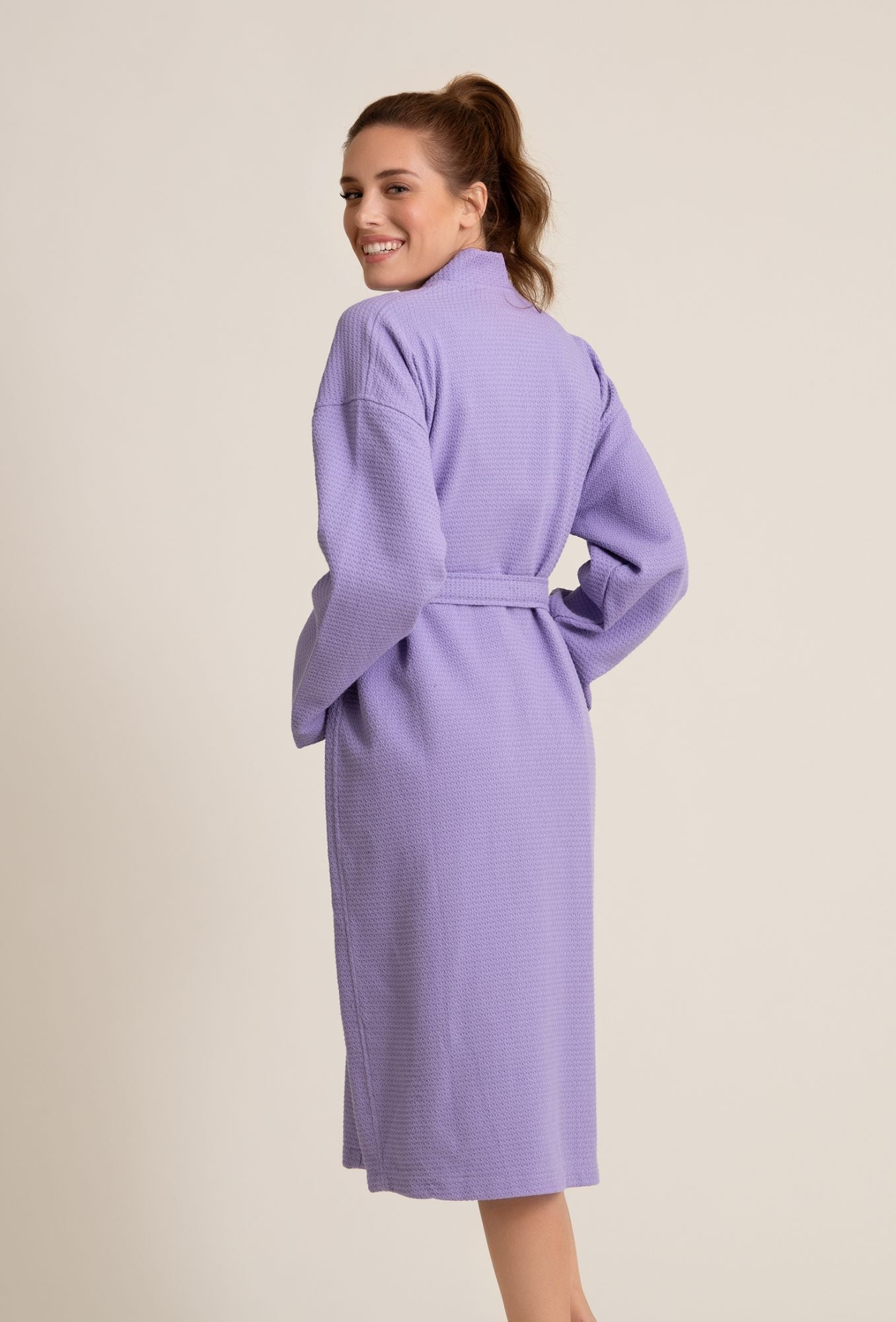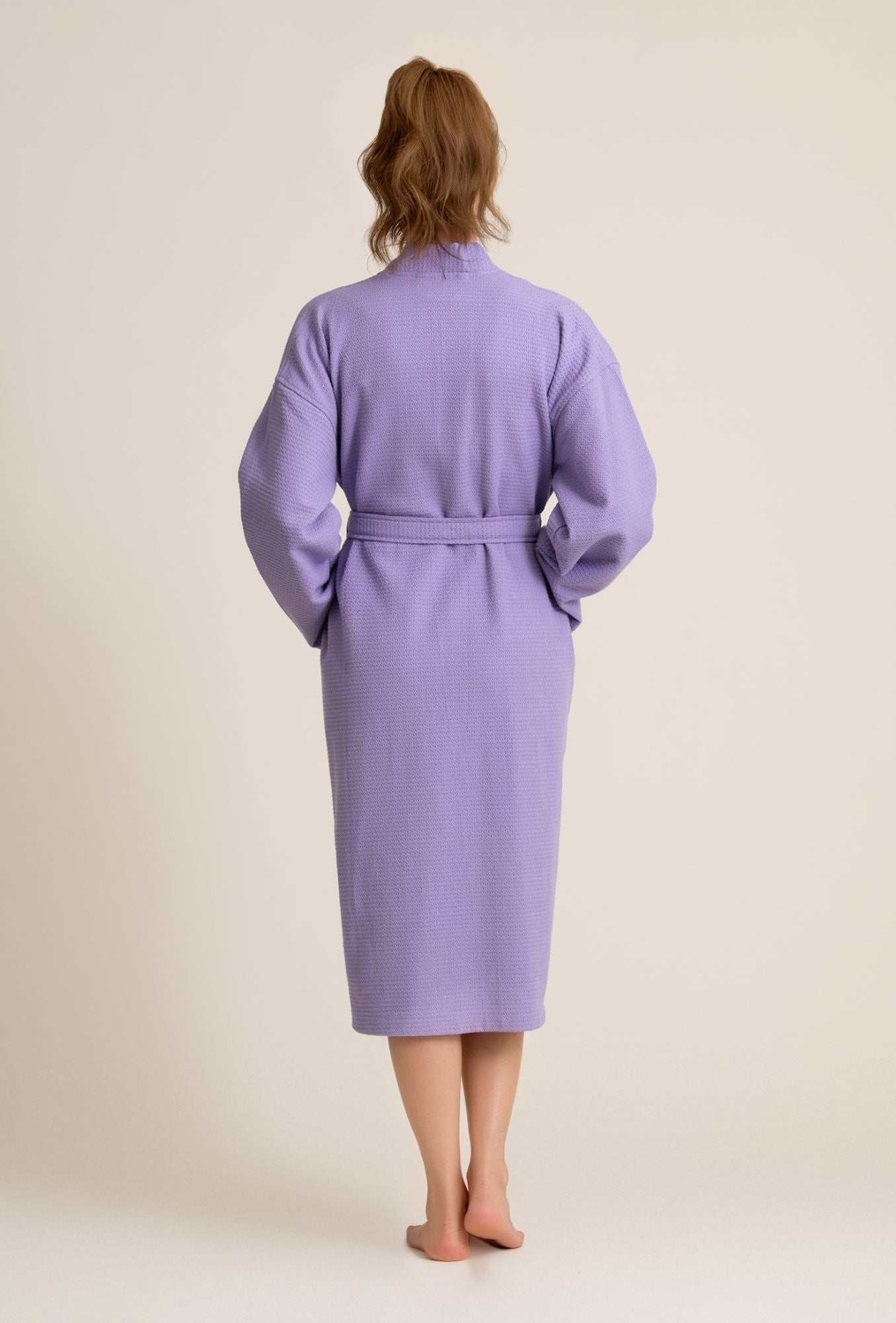 Luxurious 100% Cotton Women's Waffle Robe. Long, Lightweight Lavendar