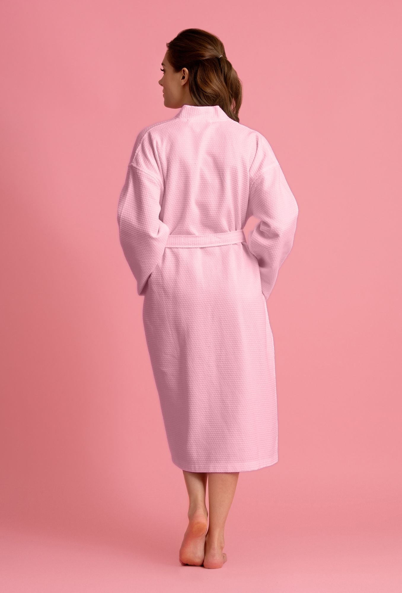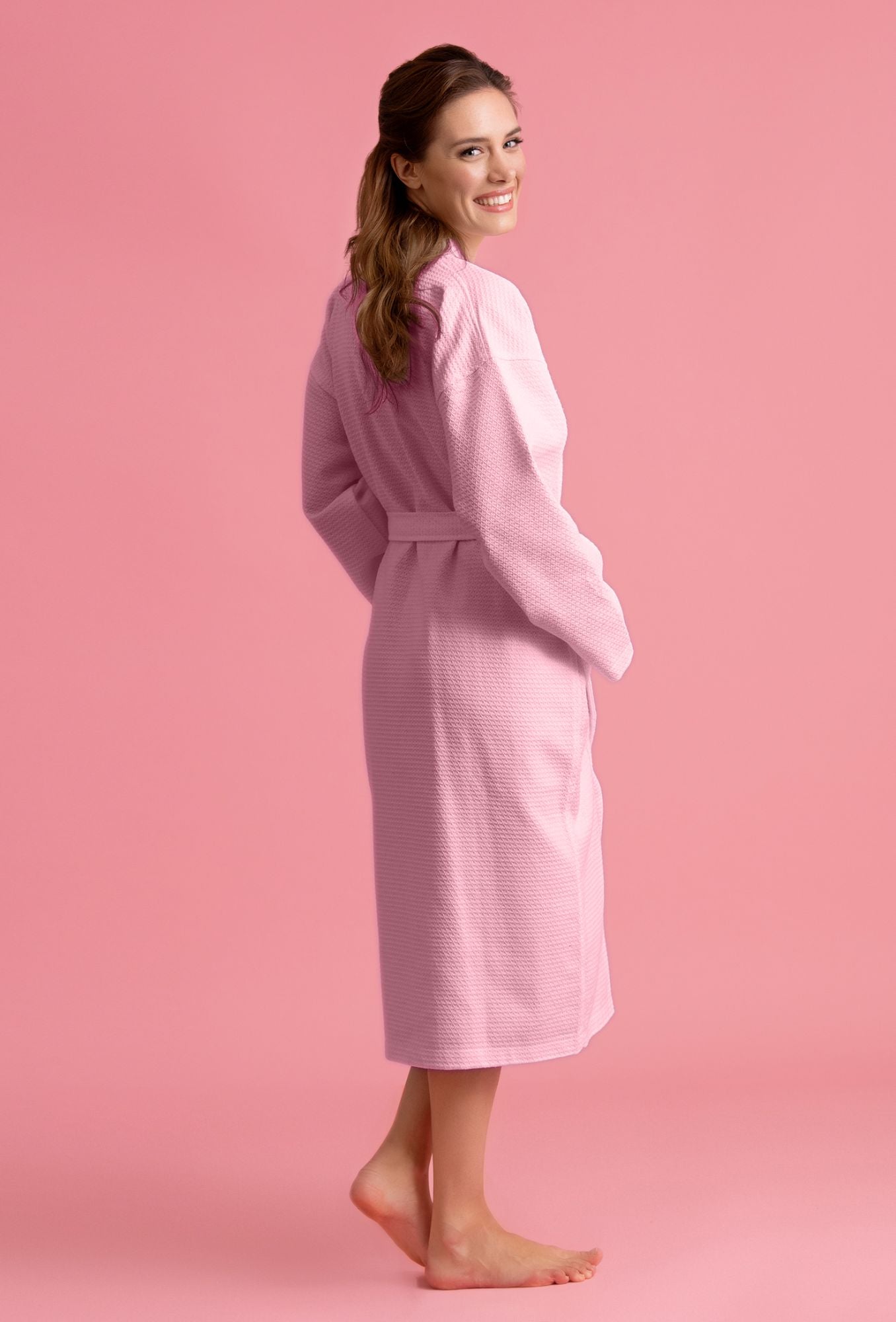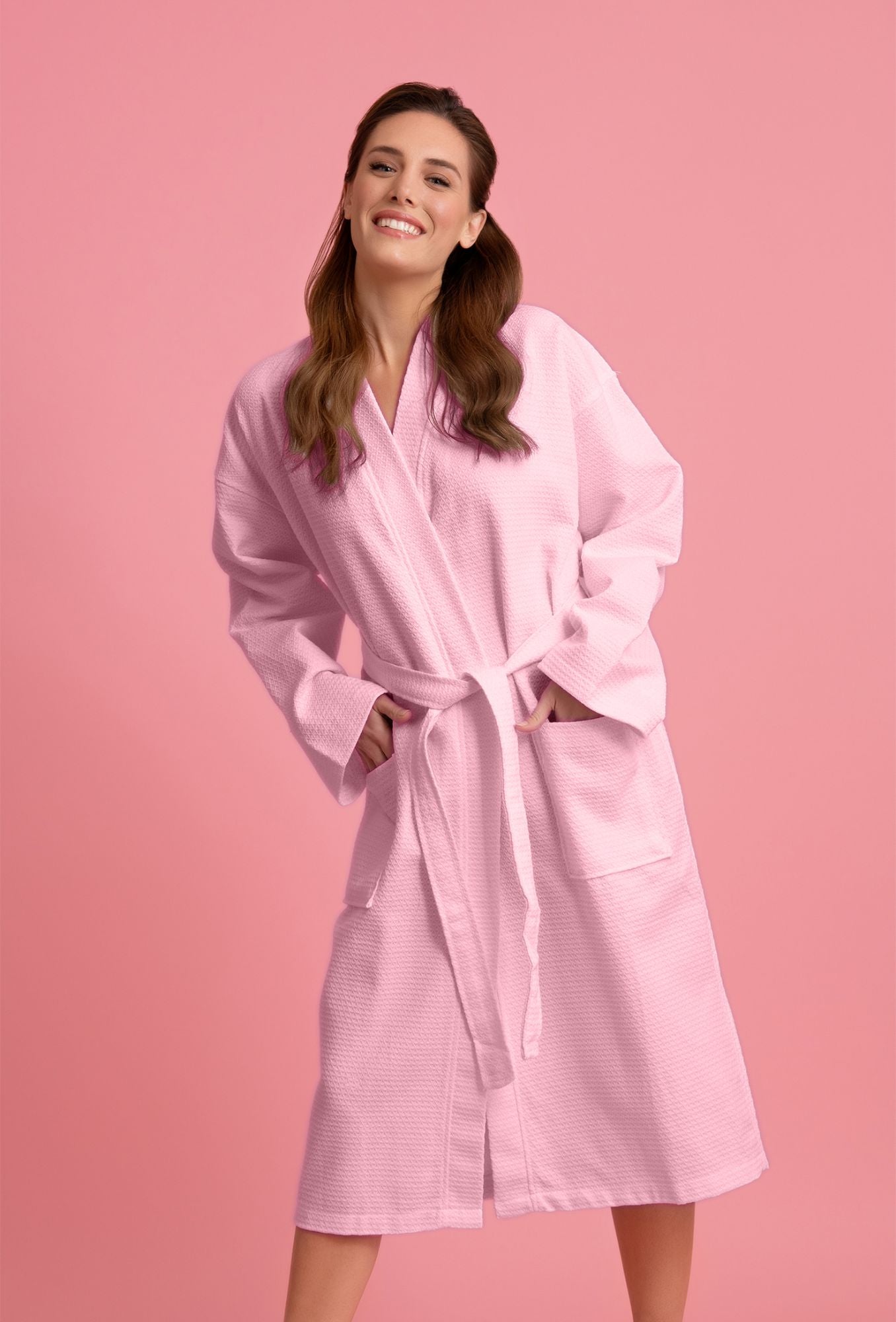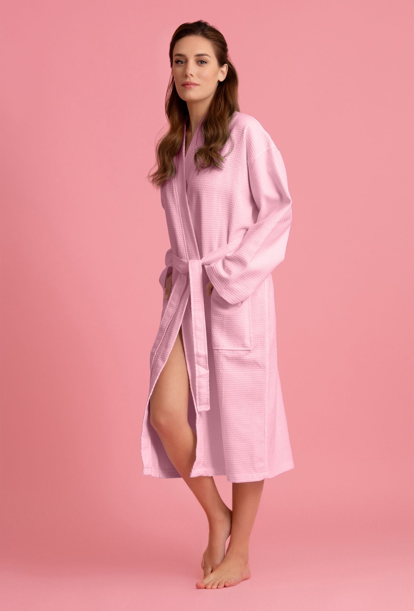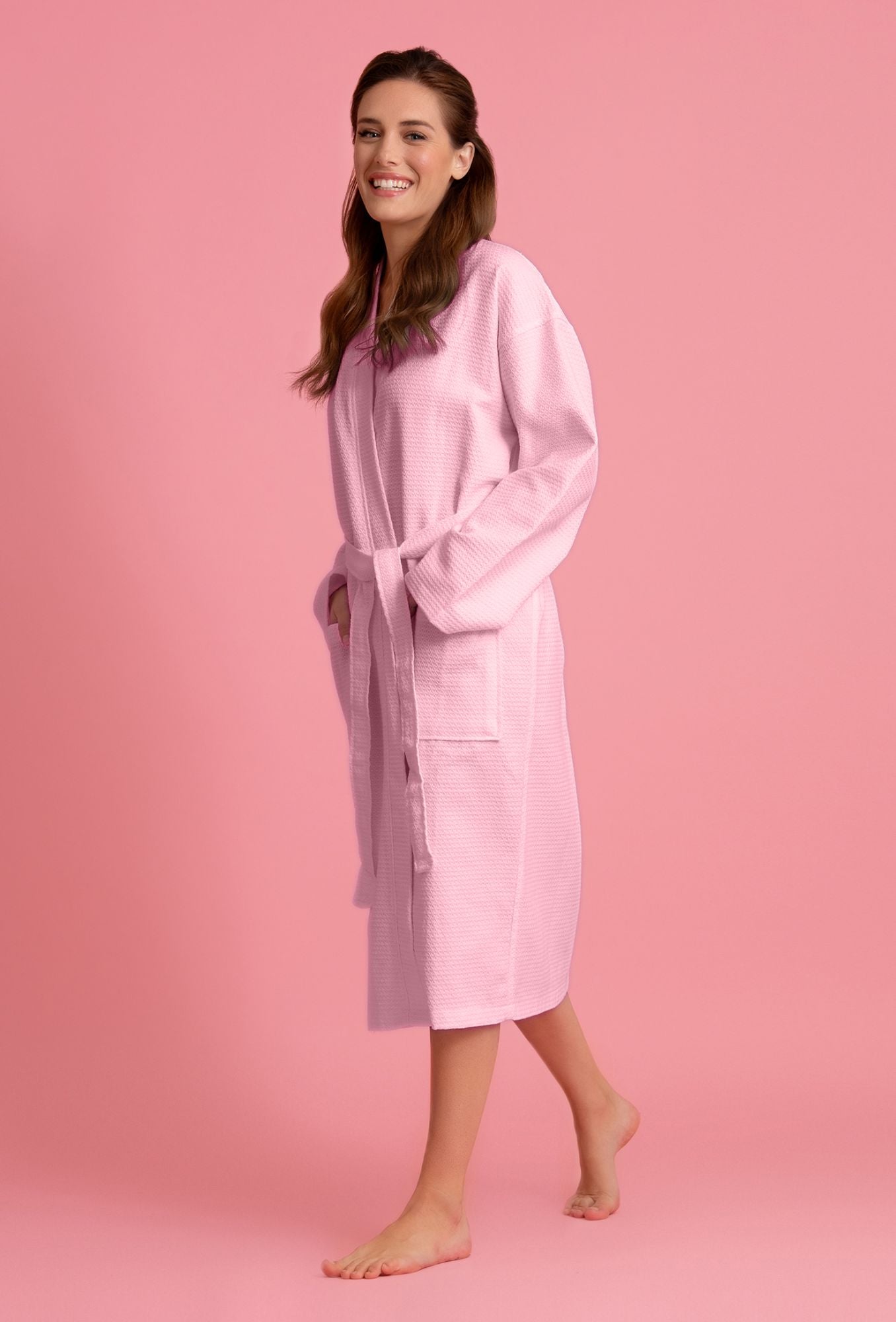 Luxurious 100% Cotton Women's Waffle Robe. Long, Lightweight Pink