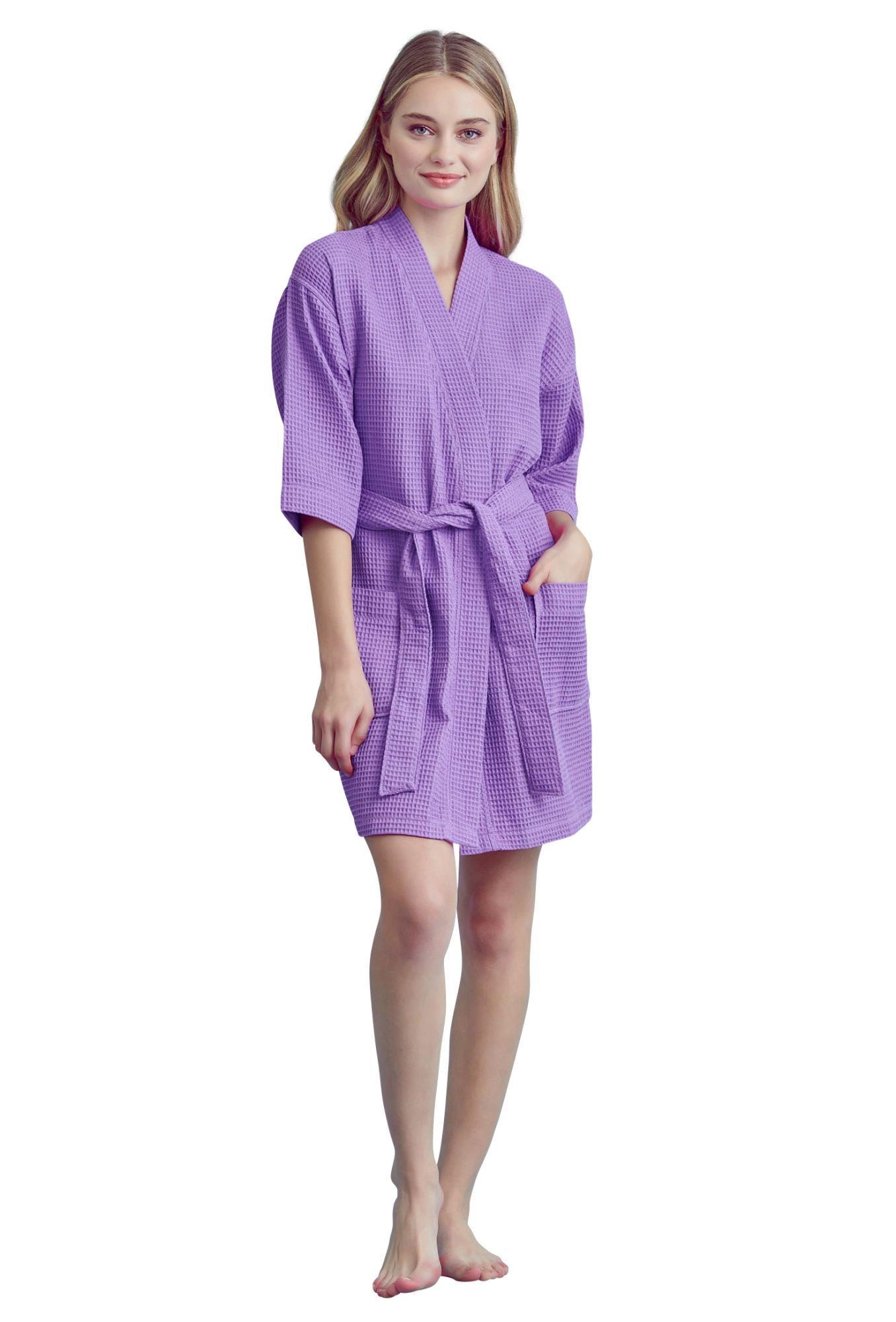 Waffle Women Robe with Free Makeup Bag ? Comfortable Thigh Length Bridal Party Kimono Bathrobe