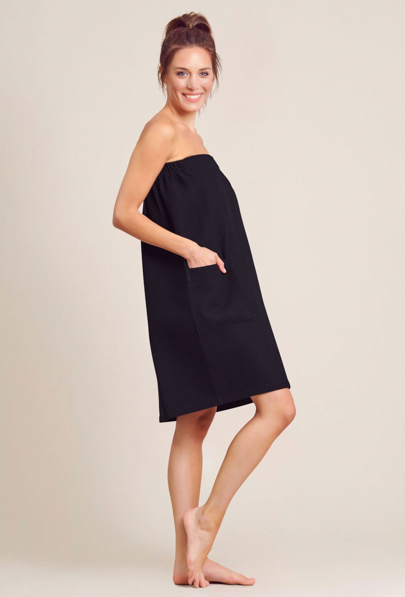 Step out of the tub or shower and into the comforting warmth of our signature waffle weave spa robe. Made from a soft blend of high-quality cotton and polyester, the strapless towel wrap absorbs fast and dries just as quickly. Finished with an adjustable elastic band, this light robe for women is one-size-fits-most.