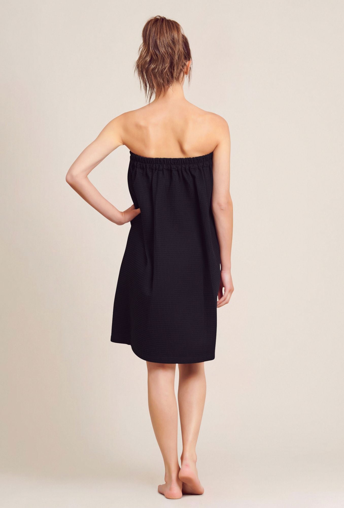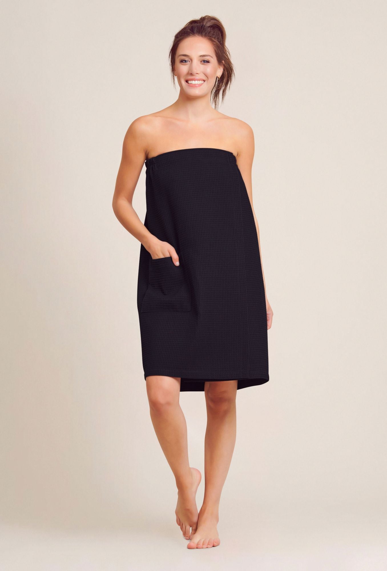 Women's Waffle Weave Spa/Bath Black Wrap with Adjustable Closure