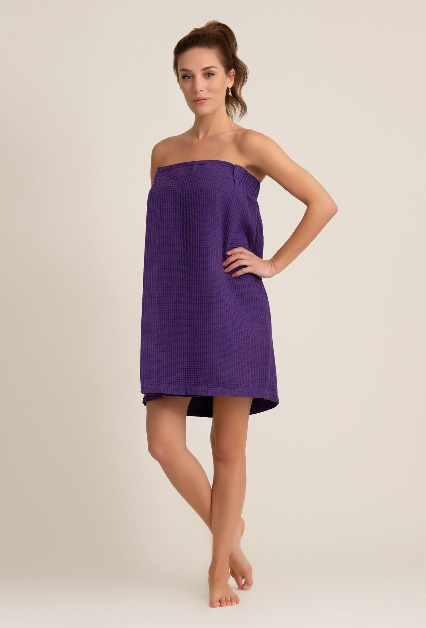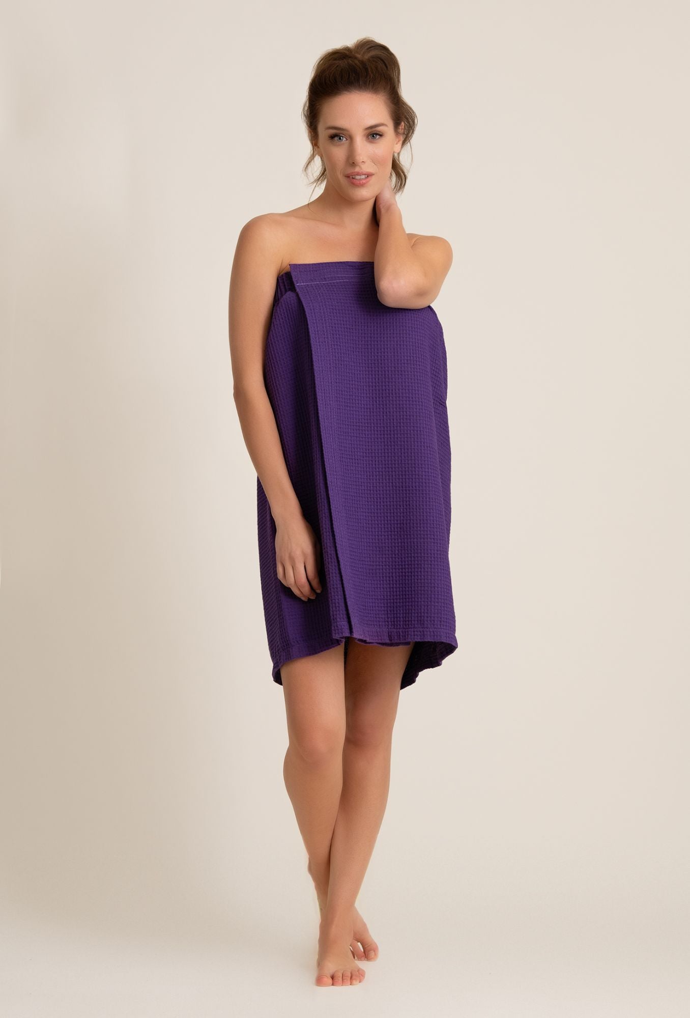 Women's Waffle Weave Spa/Bath Purple Wrap with Adjustable Closure
